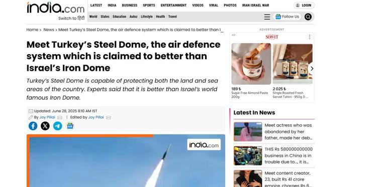 Milliyet.com.tr India.com, “İsrail’in Demir Kubbesi, dünyanın en etkili hava savunma sistemlerinden biri olarak kabul ediliyor. Ancak şimdi Türkiye de, İsrail’in Demir Kubbesini potansiyel olarak geride bırakabilecek bir teknoloji üzerinde çalışıyor” diye başladığı haberinde “Kısa süre önce yapılan NATO toplantısında, Ankara da hava savunma sistemini güçlendireceğini duyurdu” ifadelerini kullandı ve ekledi: